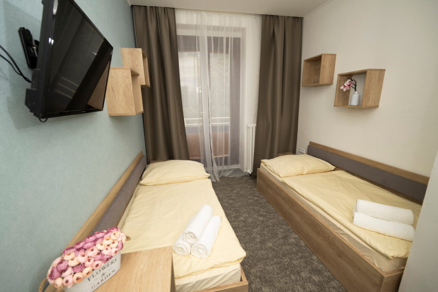 Dvojlôžková izba s oddelenými lôžkami a vlastným sociálnym zariadením.